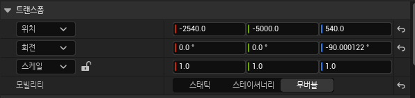 1. 모빌리티 타입을 무버블로 설정해야 피직스 시뮬레이트 적용 시, 중력이 작용하여 떨어지는 작업이 가능.
