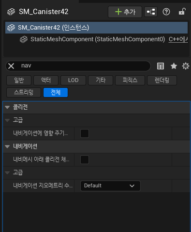 해당 스태틱 메쉬가 내비게이션에 영향을 주지 않아