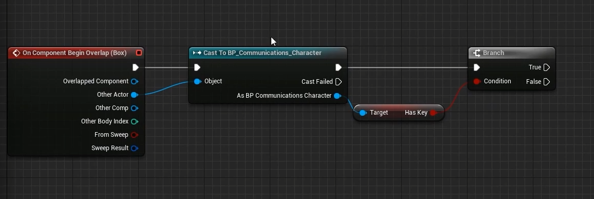 액터 오브젝트를 부모 클래스가 Character인 BP_Communication_Character로 형변환하게 되면,