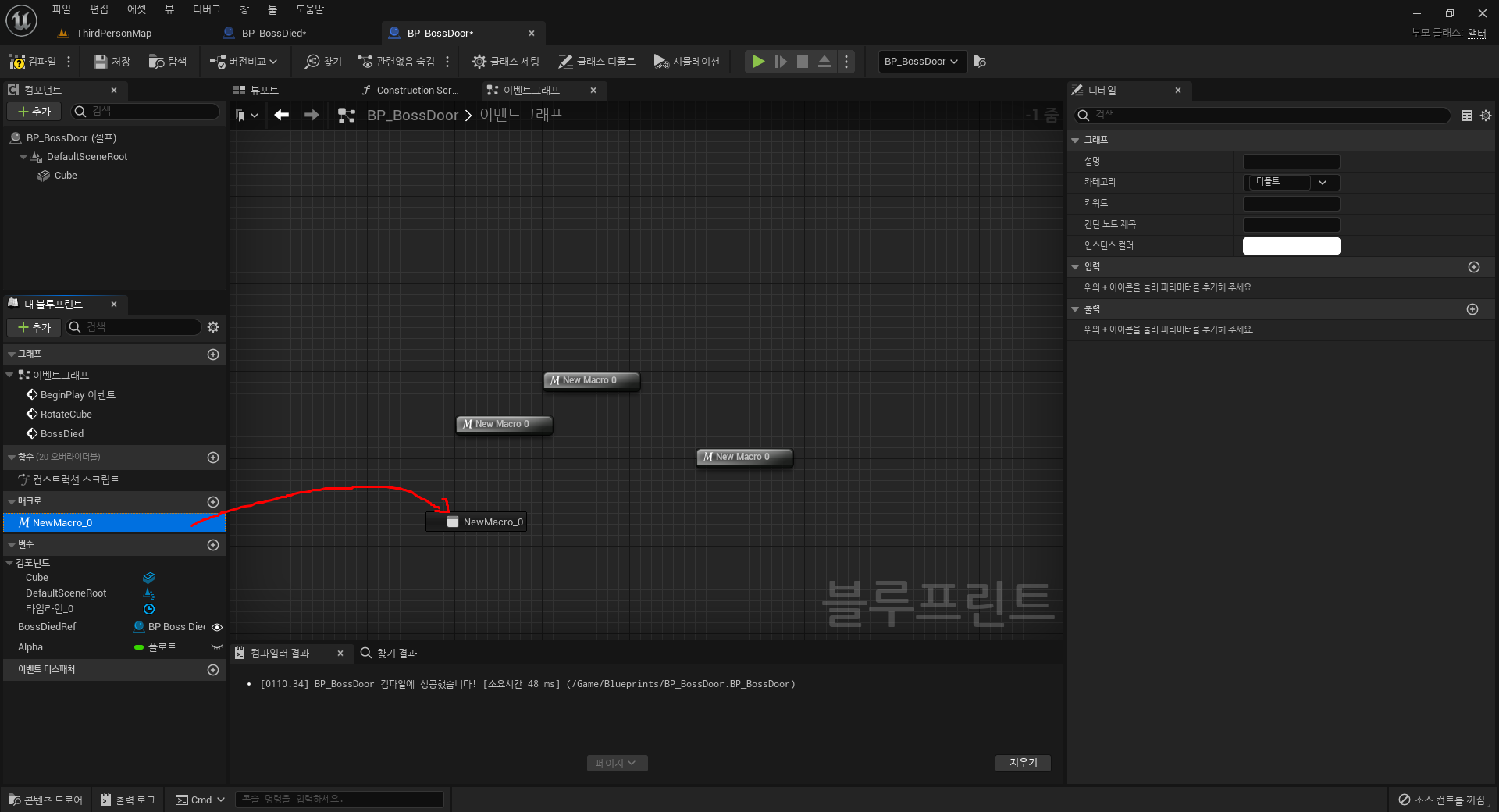 매크로를 생성한 블루프린트가 아닌 블루프린트에서의