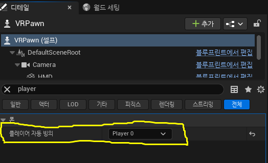 플레이어 자동 빙의 설정을 Player + 플레이어 인덱스 로 설정해준다.