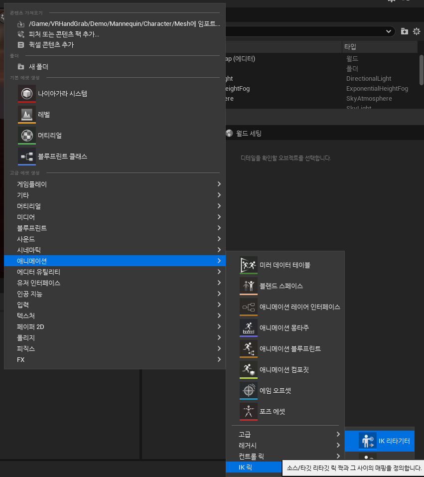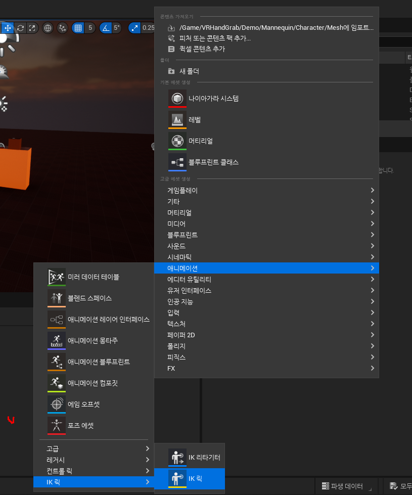 콘텐츠 브라우저에서 빈 부분에 우클릭 -> 애니메이션 - IK 릭 메뉴에 들어가면